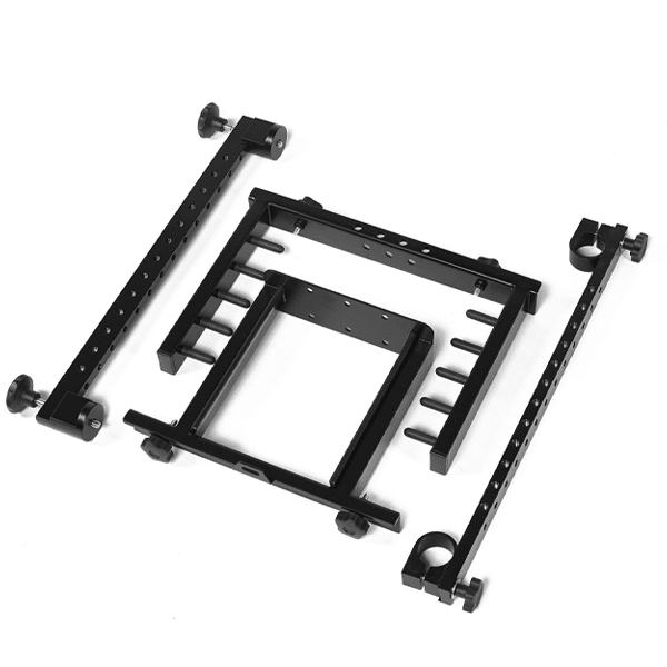 Adicam Kit Support pour 4 Trépieds C-STAND est un kit qui comprend 1 support pour socle en C avec matériel de montage, 1 barre transversale longue et 1 barre transversale longue pour tablette supérieure. Ce kit est un moyen ingénieux de stocker et de transporter des trépieds C-STAND sur votre roulante Adicam. Le support repose sur les deux barres transversales et peut donc facilement être retiré lorsqu’il n’est pas nécessaire. Vous pouvez installer jusqu’à 4 C-Stands de 20” shorties à la taille complète de 40”.