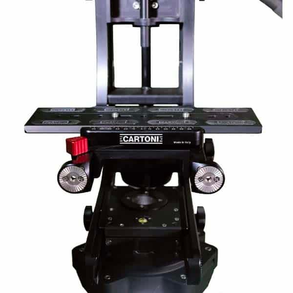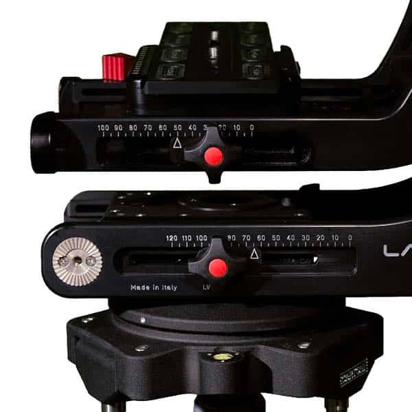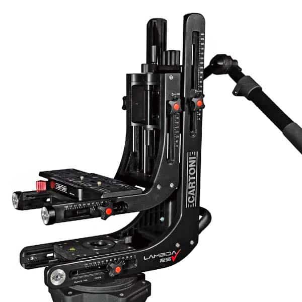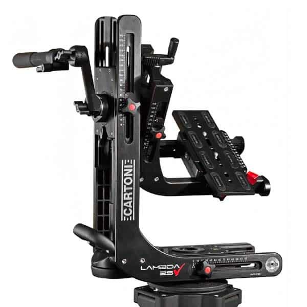 La tête fluide Lambda 25 est la solution idéale pour les caméras pesant jusqu’à 25 Kg. Elle hérite de toutes les fonctions d’une tête Lambda classique avec en plus un axe de rotation pan and tilt qui permet le passage de câbles et une rotation multiple sans limite à 360°. Lambda 25 peut être montée sur tous les supports classiques tels que trépieds, chariots, en position rigide ou bien sur des bras Jibs et des chariots.