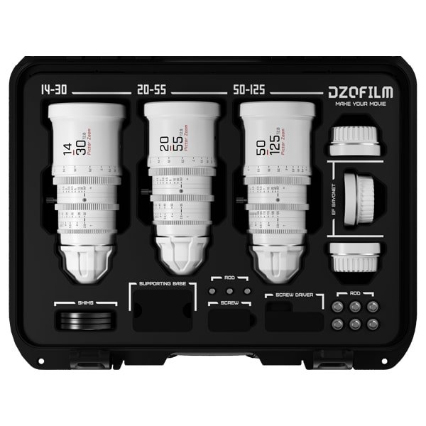 Dzofilm Pictor Zoom 14-30mm/20-55mm/50-125mm T2.8 (PL/EF, Blanc) – Kit Objectifs + Valise