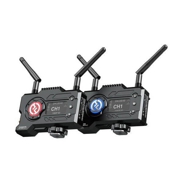 Le Hollyland Mars 400S PRO II est un système de transmission vidéo sans fil. L’émetteur fournit des entrées HDMI et SDI, et le récepteur offre des sorties SDI et HDMI. Il offre une latence extrêmement faible de 70 ms et un débit de données élevé de 12 Mb/s avec une transmission en visibilité directe jusqu’à 500 pieds vers le récepteur et vers l’application Wi-Fi Hollyview. Pour un signal en visibilité directe puissant, le système comprend deux antennes externes sur l’émetteur et deux sur le récepteur, ainsi qu’une antenne de rechange.