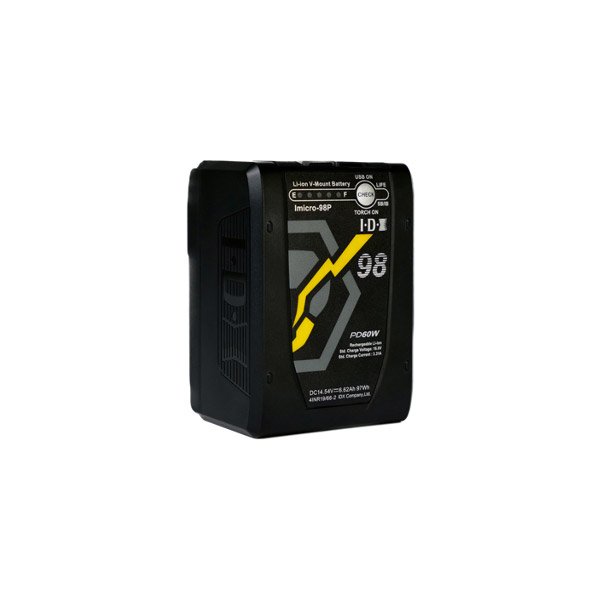 La IDX Imicro-98P est la plus petite batterie au monde avec une telle capacité. D’une puissance nominale de 97Wh, la Imicro-98P respecte les réglementations des compagnies aériennes. La taille de la Imicro est avantageuse pour les utilisateurs disposant de petits équipements et d’un stabilisateur. Elle s’adapte parfaitement à la RED V-RAPTOR. Elle comprend également une sortie USB-C PD et une sortie D-Tap, une LED V-Torch pour une utilisation dans des environnements sombres et des communications numériques pour afficher les informations de la batterie via le viseur sur des caméras telles que ARRI et RED.