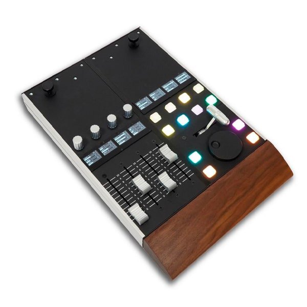 MakePro X xTend-B10 Blend est une surface de contrôle qui comprend 12 boutons-poussoirs RVB, 4 encodeurs rotatifs tactiles, 4 faders motorisés tactiles de 60 mm, 8 écrans OLED haute résolution, 1 barre en T à effet hall, 1 molette de données. Le logiciel Glue permet une définition entièrement individualisée des fonctionnalités à partir d’une vaste liste d’appareils pris en charge. Sa conception est solide avec des finitions en aluminium et bois de qualité supérieure, conçue pour durer des décennies. La conception entièrement modulaire et la séparation totale du matériel et des logiciels rendent les appareils MakePro X évolutifs.