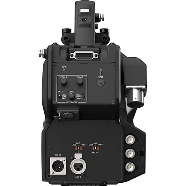 Conçue pour une utilisation en studio, la caméra Panasonic AK-PLV100 n’intègre pas d’enregistreur mais émet la vidéo via ses connecteurs fibre optique LEMO SMPTE, 12G-SDI ou 3G-SDI. Elle capture jusqu’à 59,94 fréquences d’images et peut émettre des signaux 12G-SDI directement à partir de la tête de caméra sans avoir besoin d’un CCU. La compatibilité avec les systèmes de studio 2/3″ vous permet de conserver un ensemble de composants de base pouvant être utilisé avec différentes têtes de caméra choisies en fonction de la sortie souhaitée.