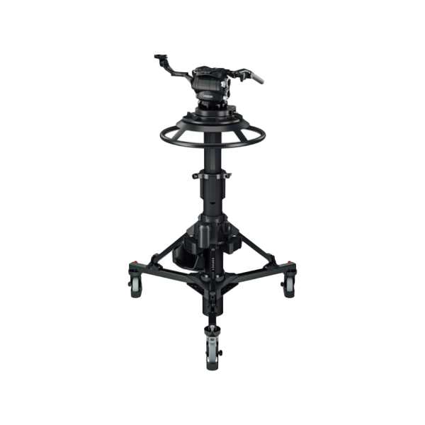 Cet ensemble trépied est équipé d’un système de compensation pneumatique performant, permettant un équilibrage parfait de la caméra, même avec des configurations lourdes. Son design robuste assure une excellente durabilité tout en facilitant les déplacements grâce à ses roulettes haute qualité.