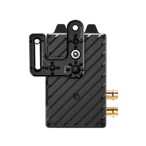 Wooden Camera Offset Support pour BOLT 4K est un support polyvalent conçu pour monter le Teradek Bolt 4K LT TX dans un maximum de six positions différentes via une seule vis captive 1/4″-20. Utilisez la fente de passage décalée de 1/4″-20 pour monter le support pour Bolt 4K LT TX directement sur tout point de montage de 1/4″-20. Les deux extrémités de la fente de passage 1/4″-20 sont équipées de goupilles de réglage amovibles à visser, qui peuvent être retirées lorsqu’elles ne sont pas utilisées. Il peut également être monté via un trou traversant de 1/4″-20 situé en haut du support. Il dispose aussi d’un point de montage 3/8″-16 et de deux points de montage 1/4″-20 avec des dépressions pour les goupilles de positionnement afin de fixer en toute sécurité des interfaces de montage supplémentaires telles que des bras articulés, des tiges et des kits de montage.