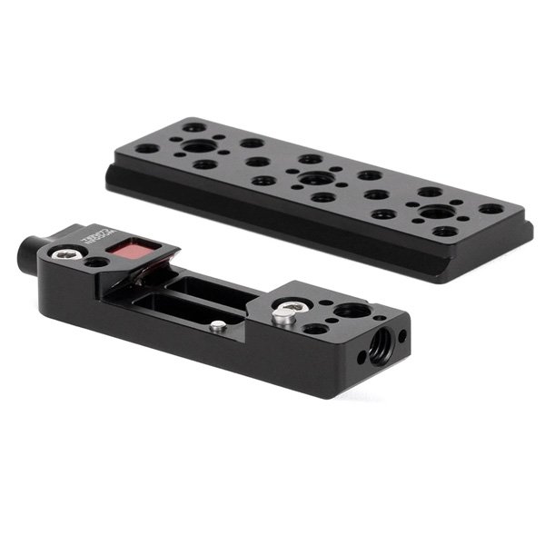 La Top Plate se fixe dans le slot ARCA Swiss ayant des montures pour des accessoires ARRI (1 / 4-20 et 3 / 8-16) dans un espacement standard et peut être ajustée vers l’avant pour permettre l’accès à l’écran et le contrôle de la caméra. Idéal pour la fixation des stabilisateurs et des drones ou d’autres produits compatibles de Wooden Camera.